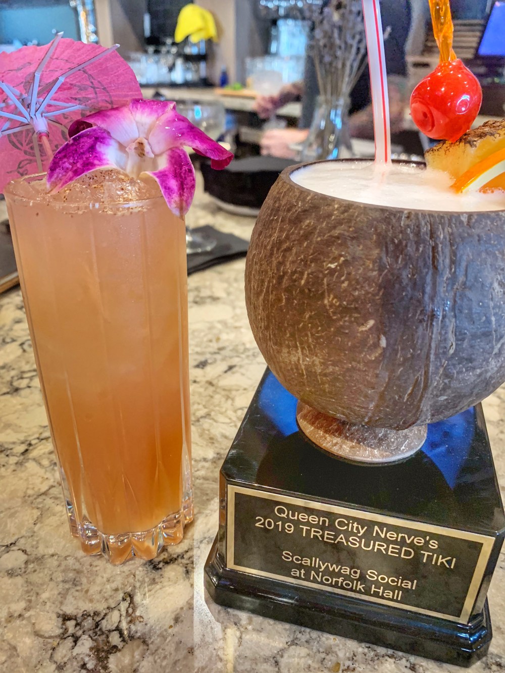 If rum is more your speed, definitely get ‘Bodhi’s Last Wave’. Rum, coconut and banana washed campri, falernum, orgeat, citrus, and pineapple will have you out here confidently defeating the heat ‘surfing’ looks! This delectable drink actually stole the show at Queen City Nerves Scallywag Social this year and it is very obvious why.