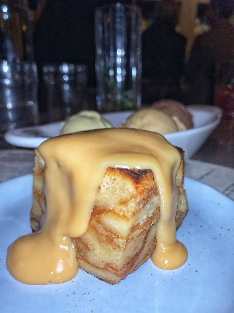 We have definitely made it clear that we are big fans of Zeppelin. The atmosphere, the decor, the folks running the spot, all fantastic. $35 here will get you a first course of either hush puppies or calamari, a second course choosing either Brunswick stew or Petite Lettuces, the third course with possibly the hardest decision of a Hot Chicken Basket, a Joyce Farms Beef & Pork Cheek Burger, or Roasted & Glazed NC Carrots. DESSERT comes as your fourth course with options of Krispy Kreme Bread Pudding (y’all loved this on IG!) or a Trio of Ice Creams: Chef’s choice. Honestly, you don’t want to have to decide between all of their ice cream flavors – ask them to rattle them off and prepare to be in awe!