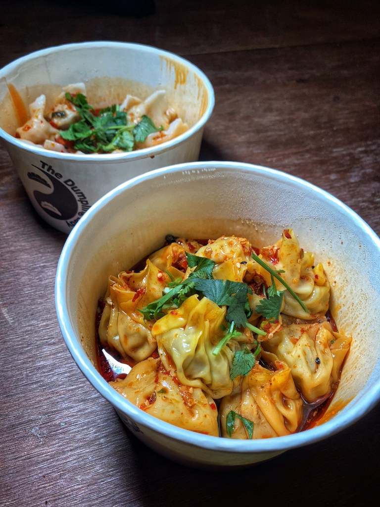 I told Danny I was sorry, but I panic ordered Dumpling Lady. She used to visit Triple C Brewing once a weekend, which is our backyard. Or we could find her at Food Truck Friday at Resident Culture. I am very thankful for the Optimist Hall Ambassadors waiting for us to drive thru so they can scoop our orders, and for shrimp & chicken and sweet pork belly dumplings.