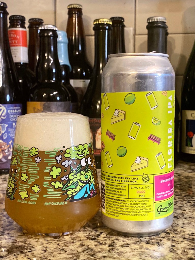 Green Bench Brewing is the OG of the Florida Style IPA. Sour x Hoppy x Heavily Fruited. The Key Lime Pie Sour IPA is 6.7% and brewed with key lime, lactose, vanilla, and cinnamon.
