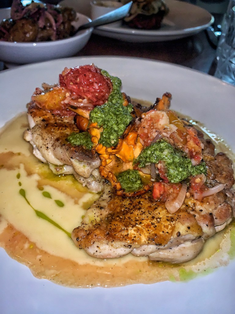 We wined and dined at Asheville Proper for our one year marriage anniversary and we were blown away! Very chic and modern feel. Immediately went in on the Wood Fired Pork Ribs with a jalapeño-peach glaze, scallion, and pecan. VERY good. The Brick Pressed Joyce Farms Chicken had sweet corn coulis, arugula pesto, and tomato confit that was also awesome. The 21 Day Dry Aged New York Strip of 10 oz Apple Brandy Beef STOLE the show however. Truffle butter added made it that much better! We almost didn’t go for S’MORE, but we are so glad we did. House made graham cracker, chocolate smear, fire roasted marshmallow ice cream (HOLY !!). Highly recommend Asheville Proper for any occasion. You can even kick it at the bar with starters and drinks for a different experience.